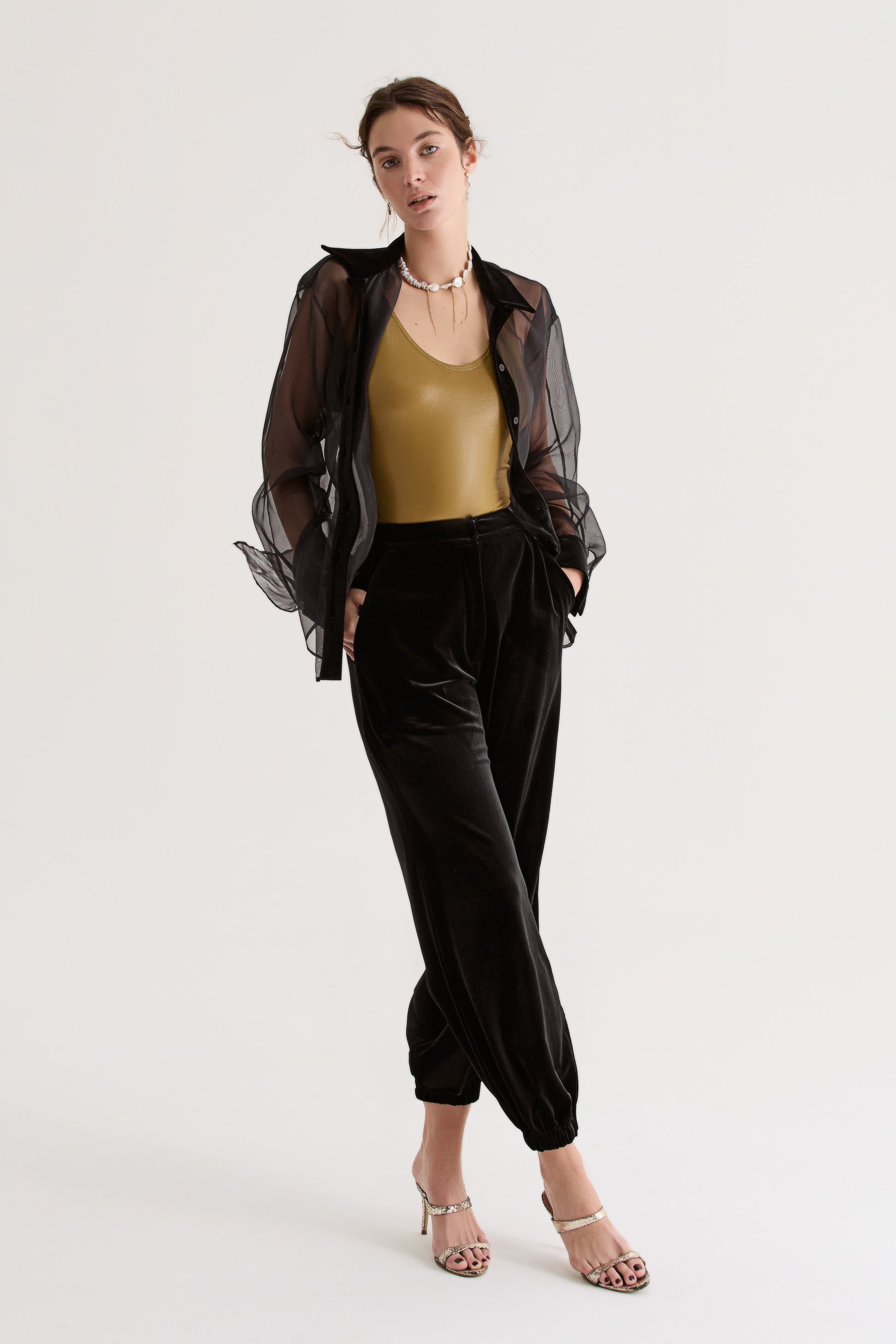 Delicate gold-plated hardware on the straps adds a refined accent and a subtle touch of shine, highlighting the clean silhouette. The wrinkle-resistant fabric ensures a flawless look all day long.