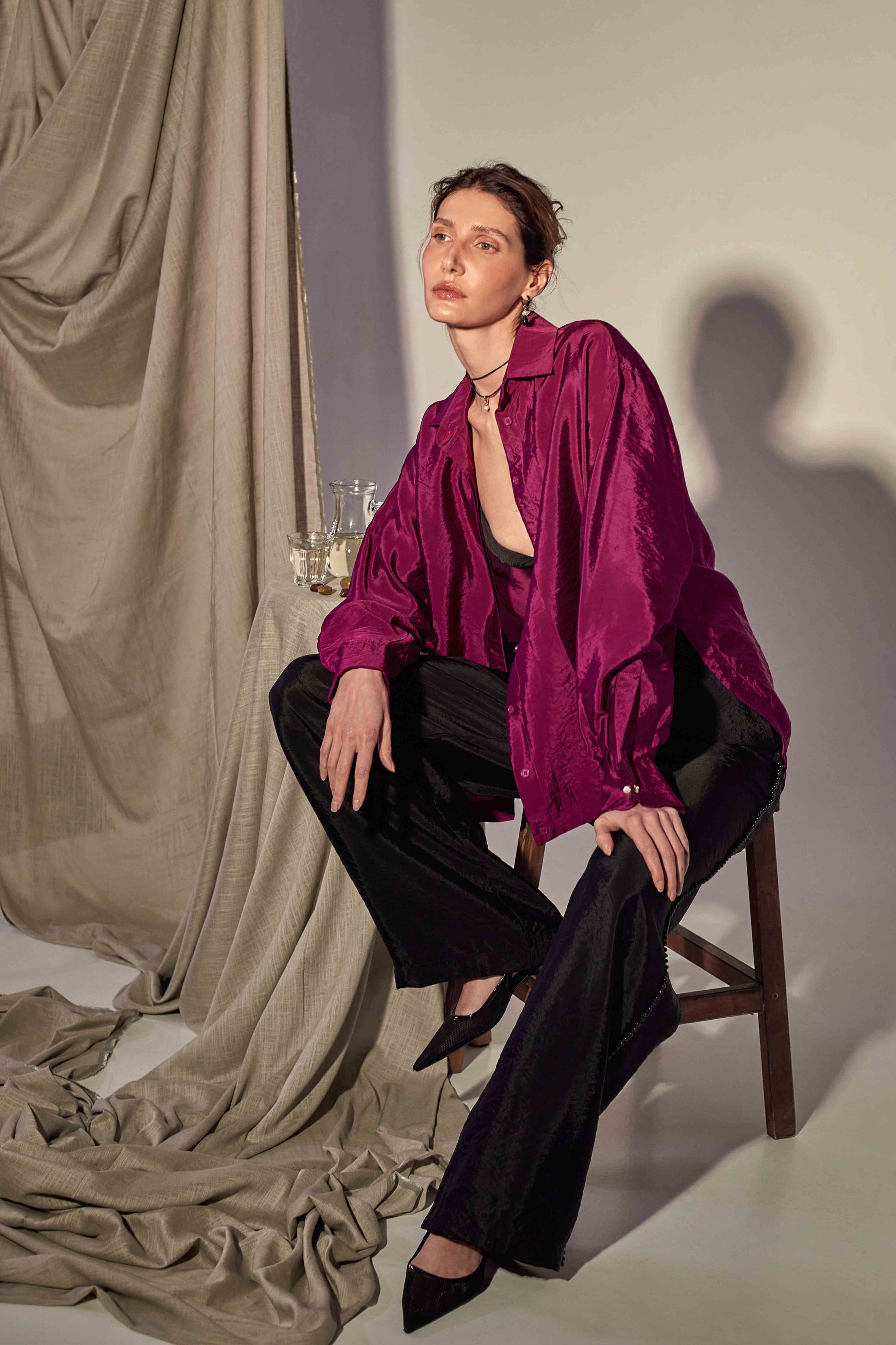Shirt in raspberry color from the Evia collection, is a versatile and stylish addition to your resort wardrobe. The lightweight, breathable fabric ensures comfort even in warm climates, while the relaxed silhouette adds an effortless touch of elegance. Pair it with Evia collection shorts or trousers to create the perfect day-to-night ensemble.