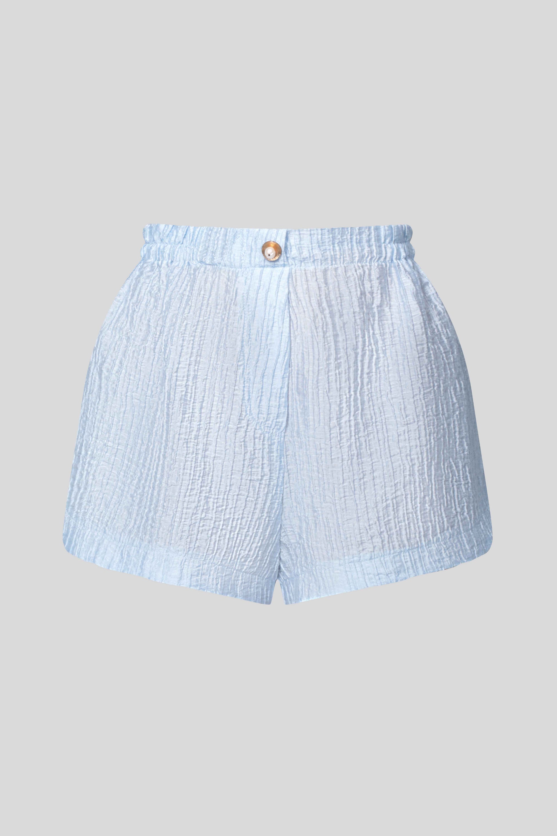 These lightweight, almost weightlesssky blue shorts are your go-to piece for effortless seaside elegance. No ironing needed — it retains its shape perfectly, making it ideal for travel and easy styling. They take up minimal space in your luggage but open up endless styling possibilities for summer looks.