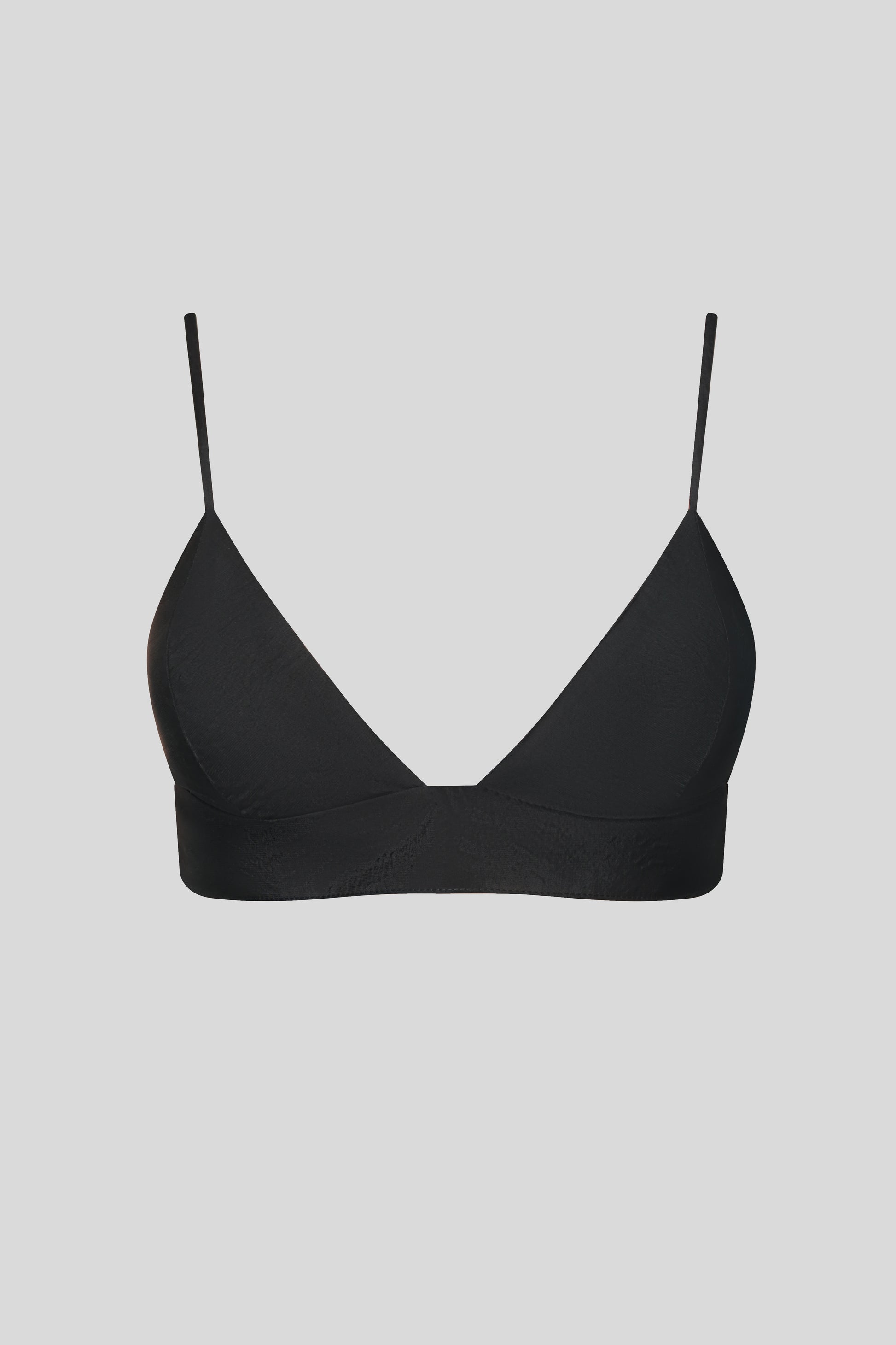 Black top-bra from the Evia collection ensure a perfect fit and ultimate comfort. Wear it on its own for a minimalist look or pair it with a lightweight oversized shirt from the same collection to create a stylish and versatile outfit for any occasion.