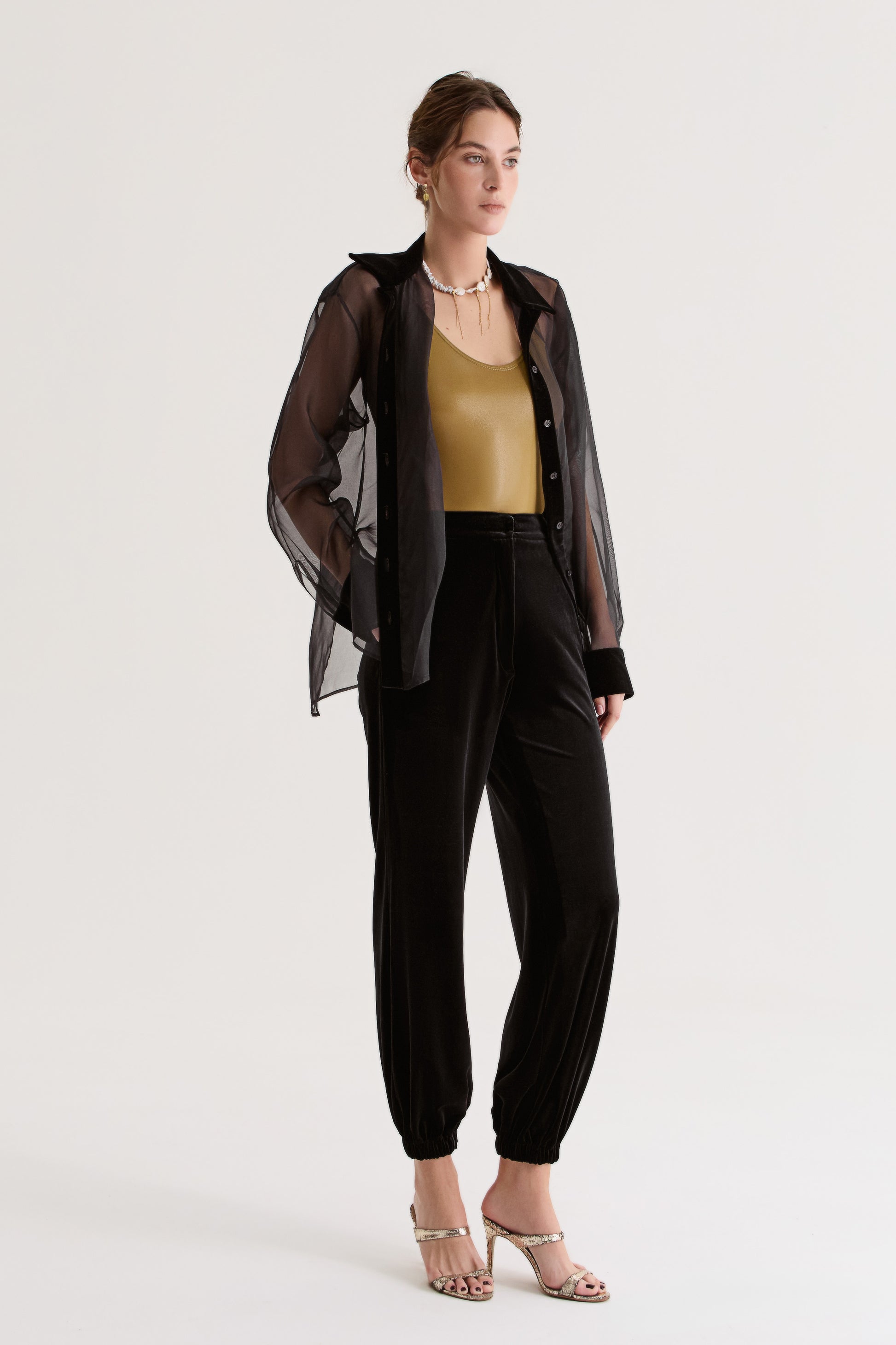 Soft aladdin velvet pants — where comfort meets understated elegance.