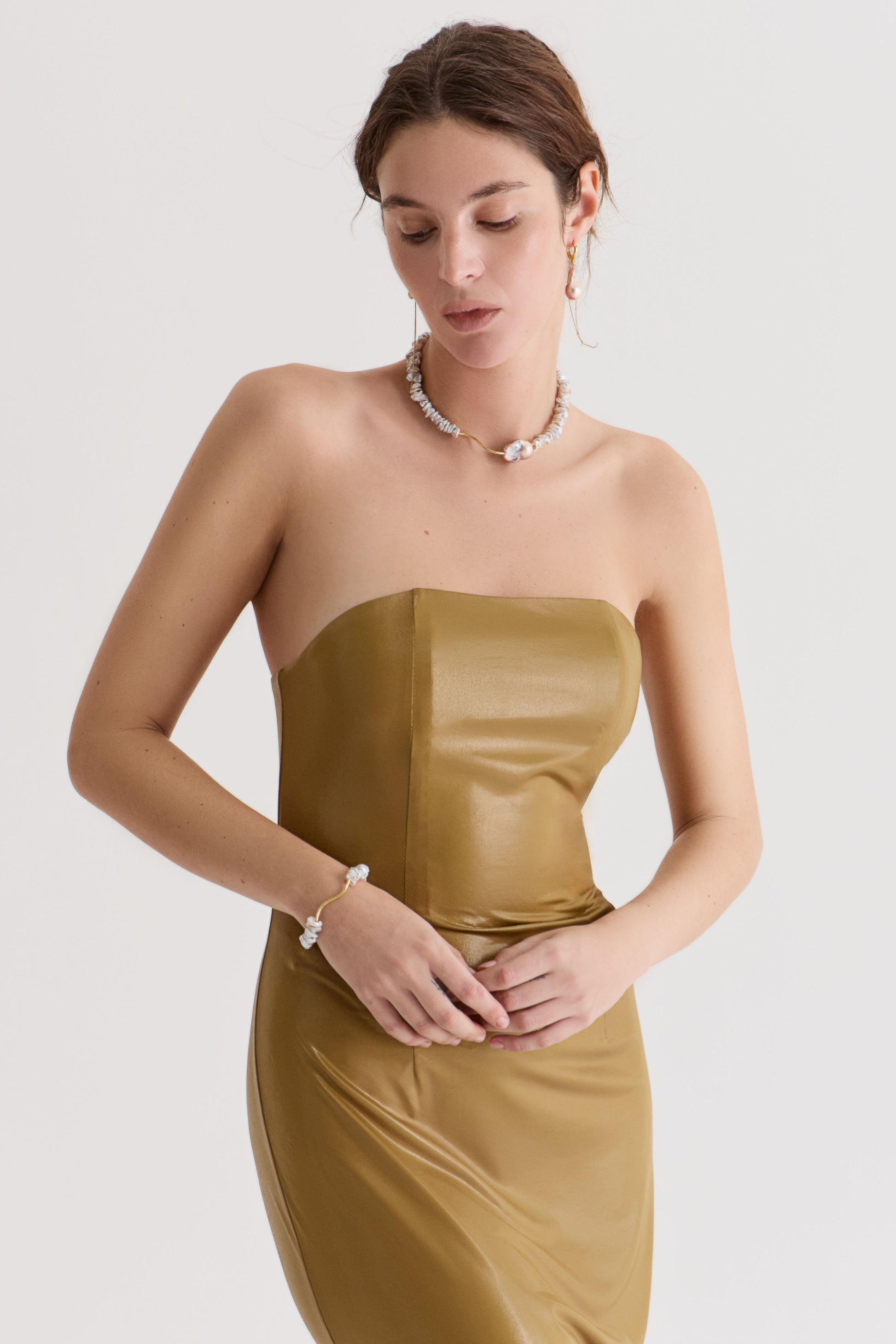 Річкові перлини м’яко відбивають світло, створюючи ефект хвиль, що переливаються, а барокова перлина додає унікальності та об’єму. Її перламутрове сяйво нагадує блиск сонця на воді, коли море спокійне.