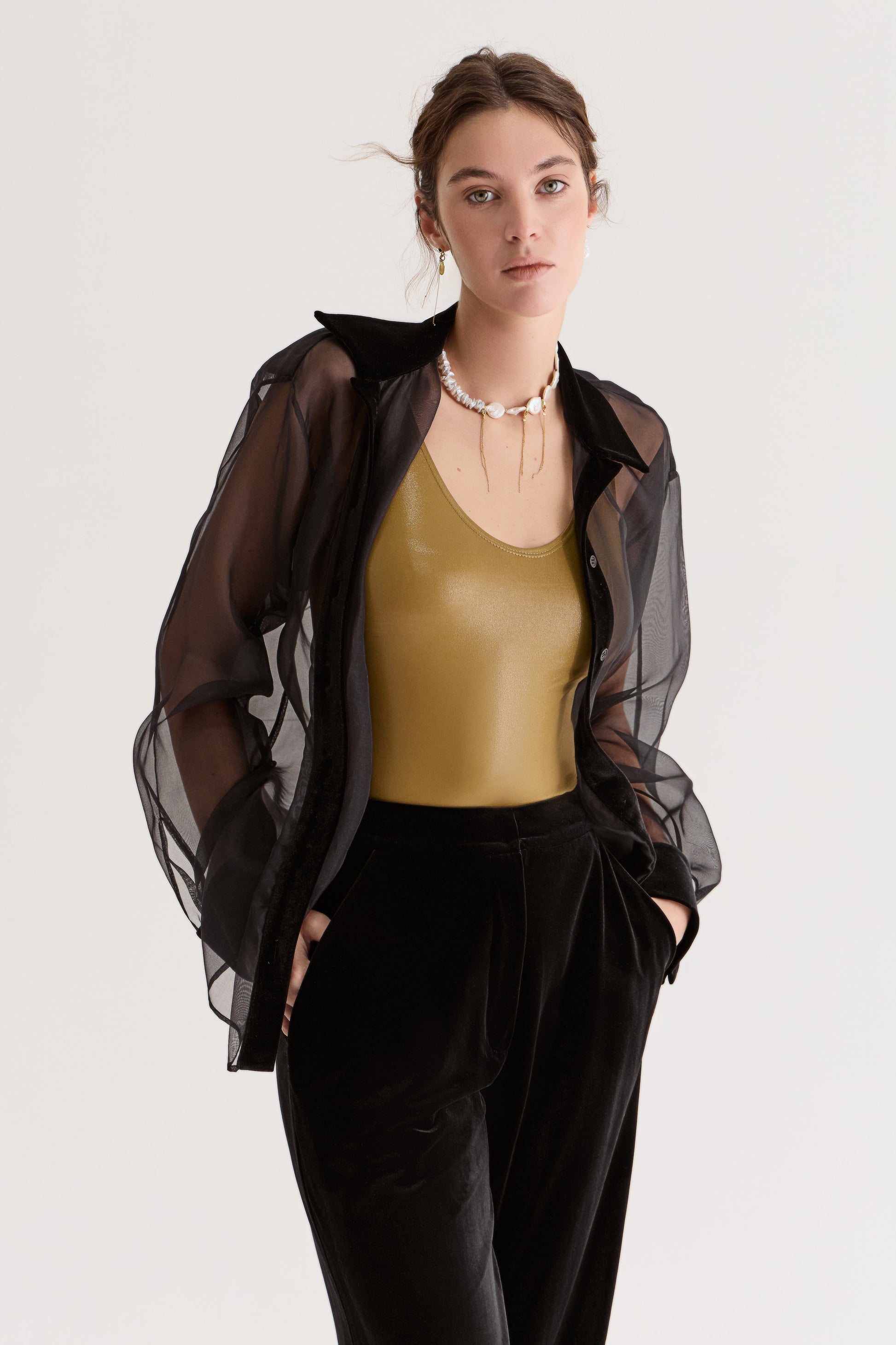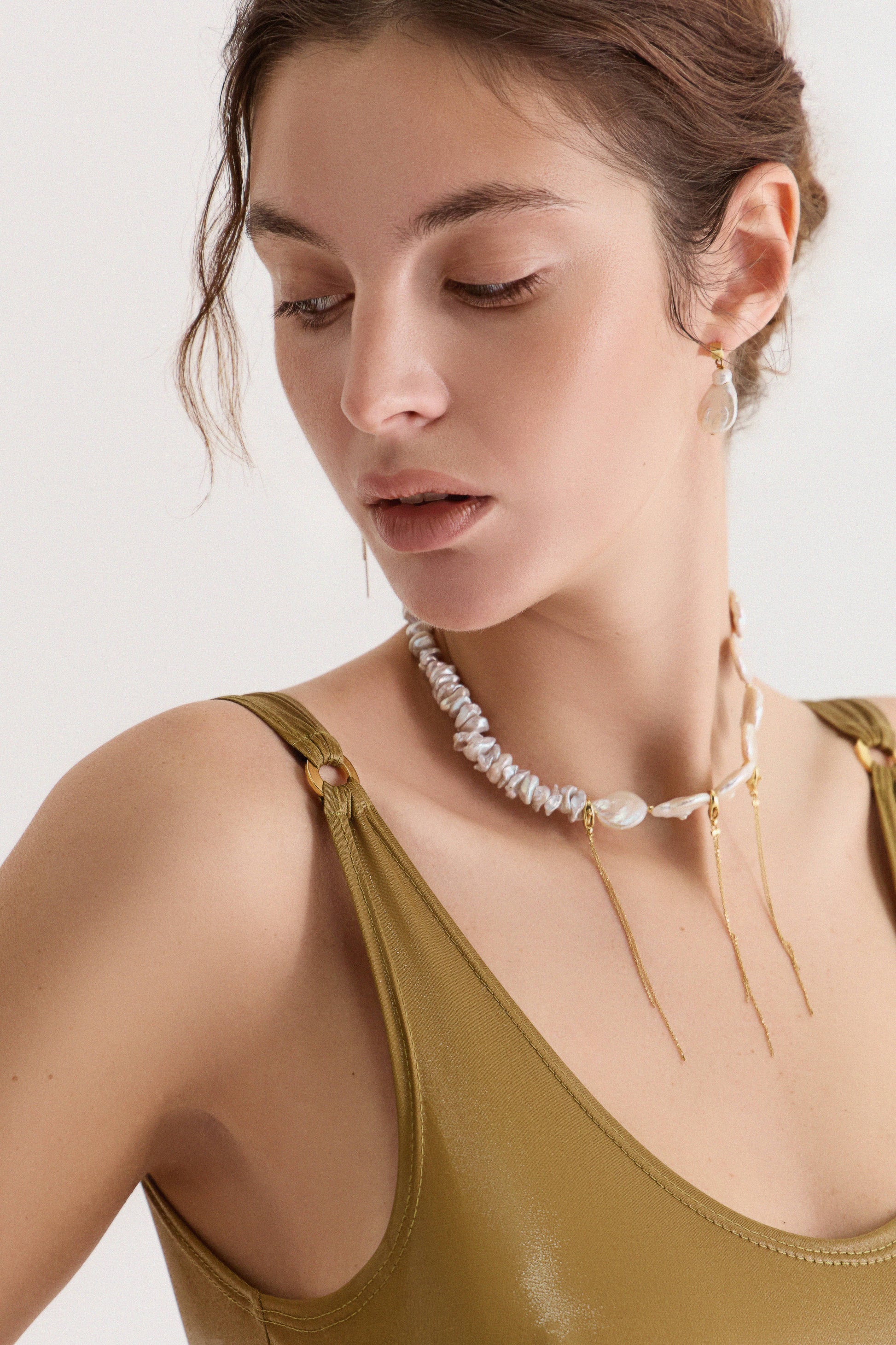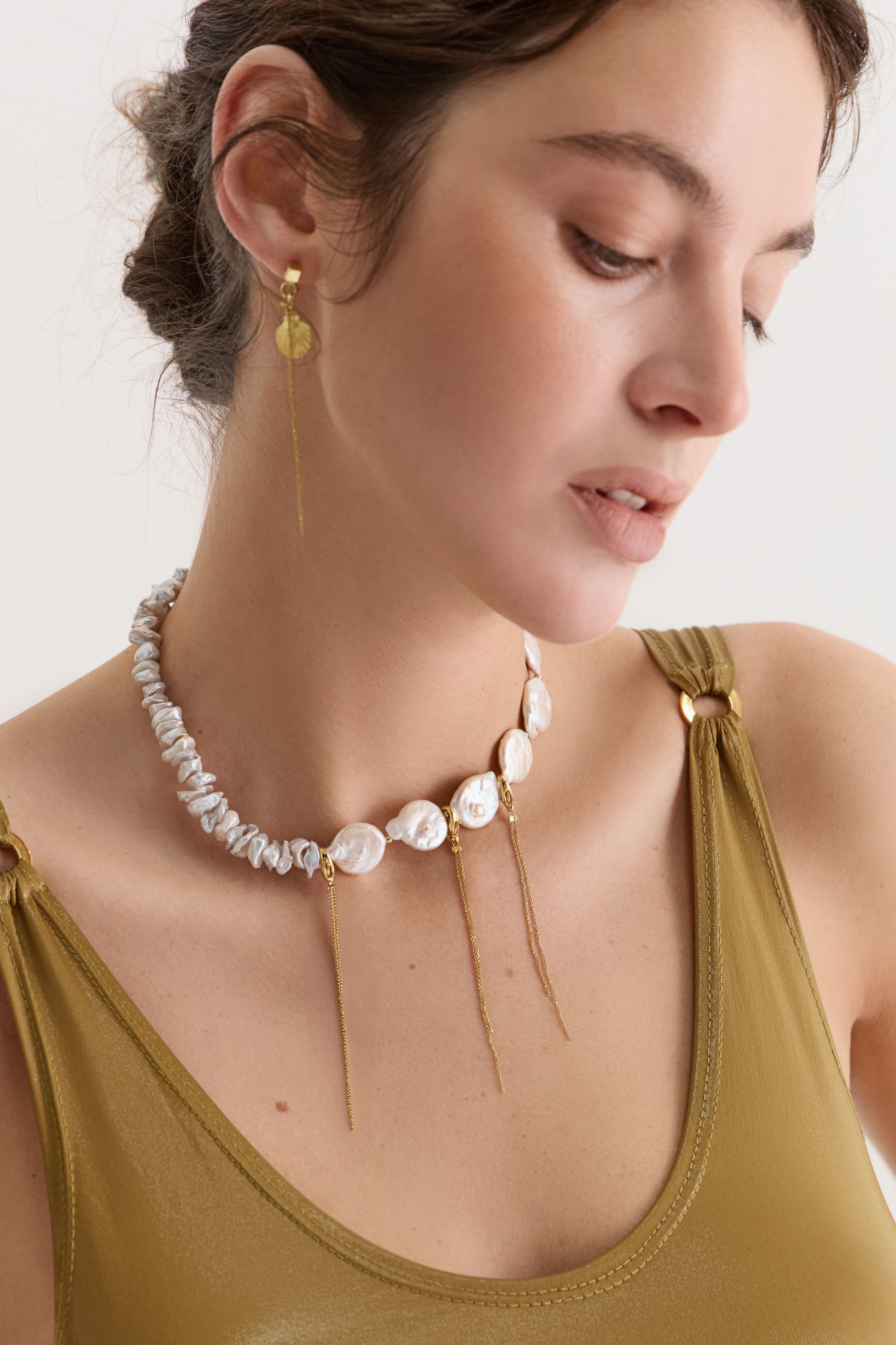 У прикрасі поєднані річкові перлини різної форми — які створюють природний контраст і ритм, ніби хвилі, що перегукуються одна з одною.