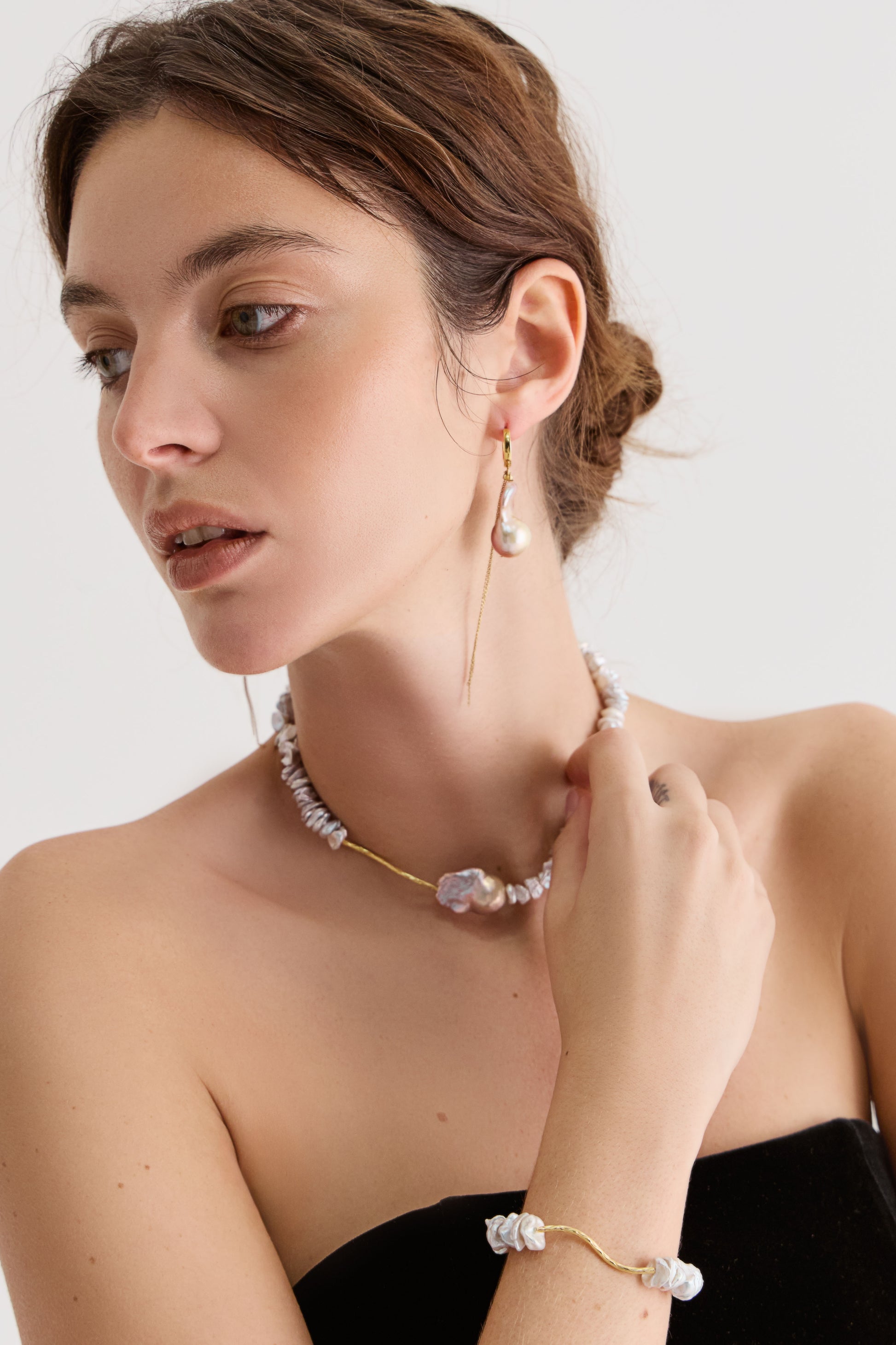 Сережки Éna — асиметрична пара, що поєднує природну недосконалість і витонченість, ніби створена морем.