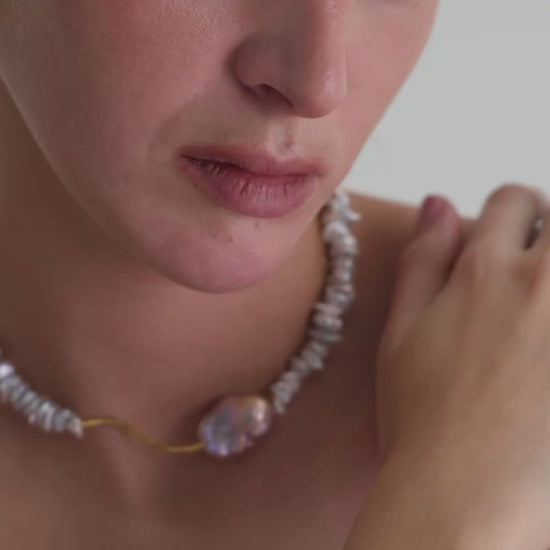 Барокова перлина з м’яким перламутровим блиском символізує глибину і спокій, тоді як позолочена мушля — легкість і світло прибережних хвиль.