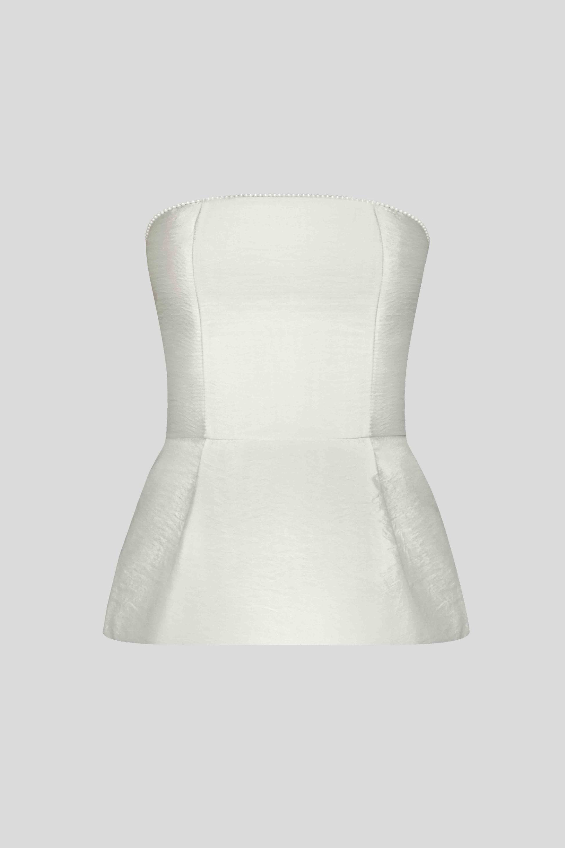 Жіночний та виразний топ-баска з відкритими плечима з колекції Делос, створений для особливих моментів. Підкреслює витончену лінію шиї та плечей, створюючи розкішний силует. Завдяки своєму об’ємному крою, топ красиво струмує в русі.